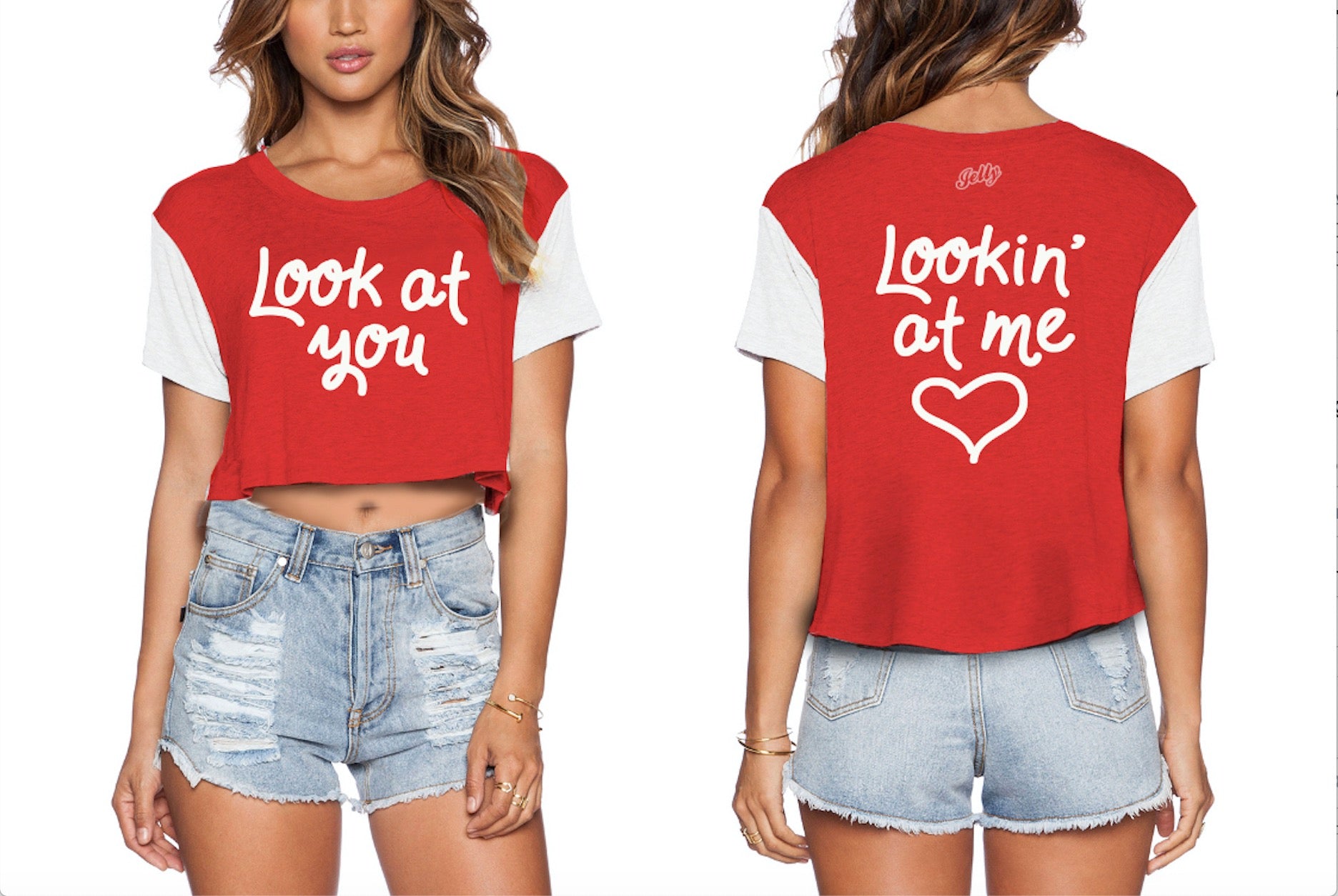 The shirt that says it all also makes a statement about quality. The Jelly Jealous "Look at you lookin' at me" t-shirt is made with a super comfy pima cotton so it feels as good as it looks on you.
